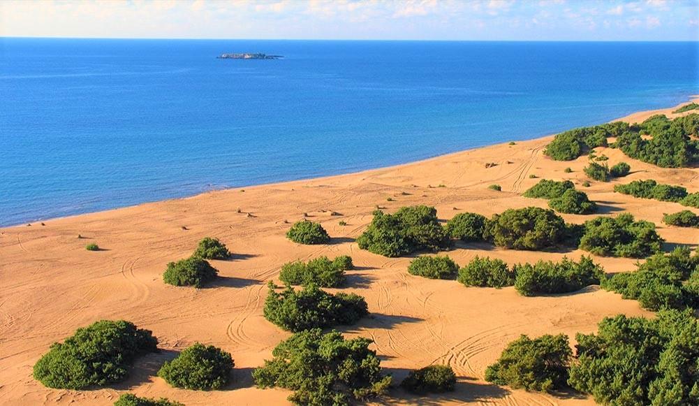 Issos beach in Corfu is known for its golden sand dunesand crystal-clear waters,making it a perfect spot for sunbathing,swimminig and windsurfing.This beautiful beach offers a unique blend of natural beauty and tranquility.